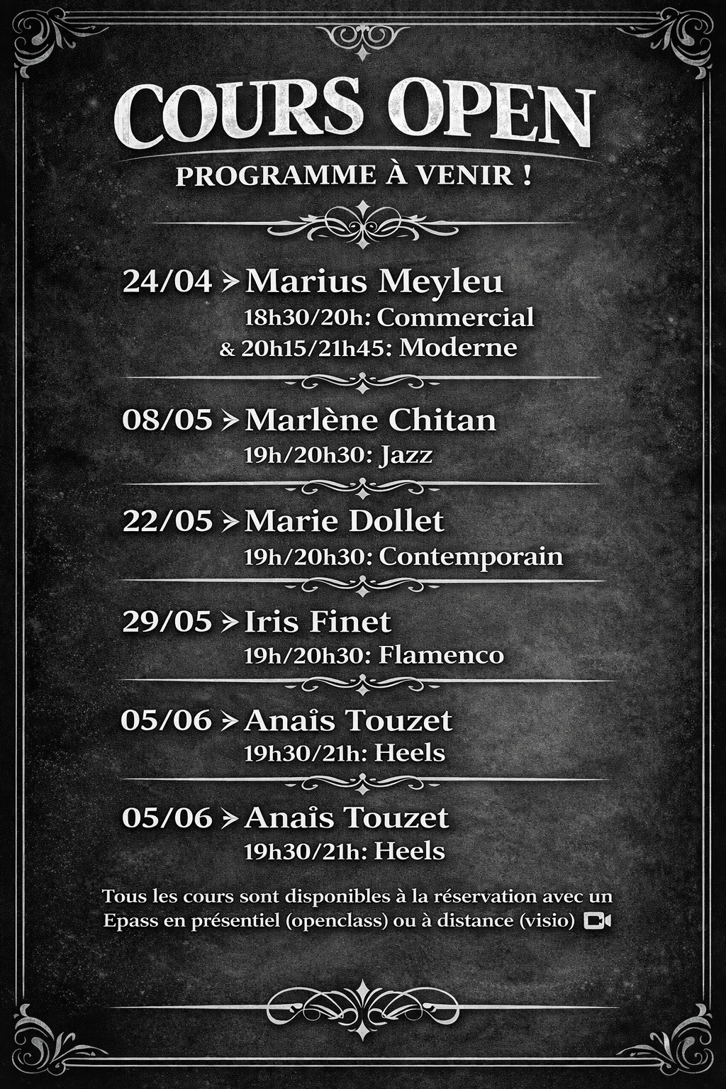 Réservez votre Cours Open – les vendredis soirs à l’Atelier.