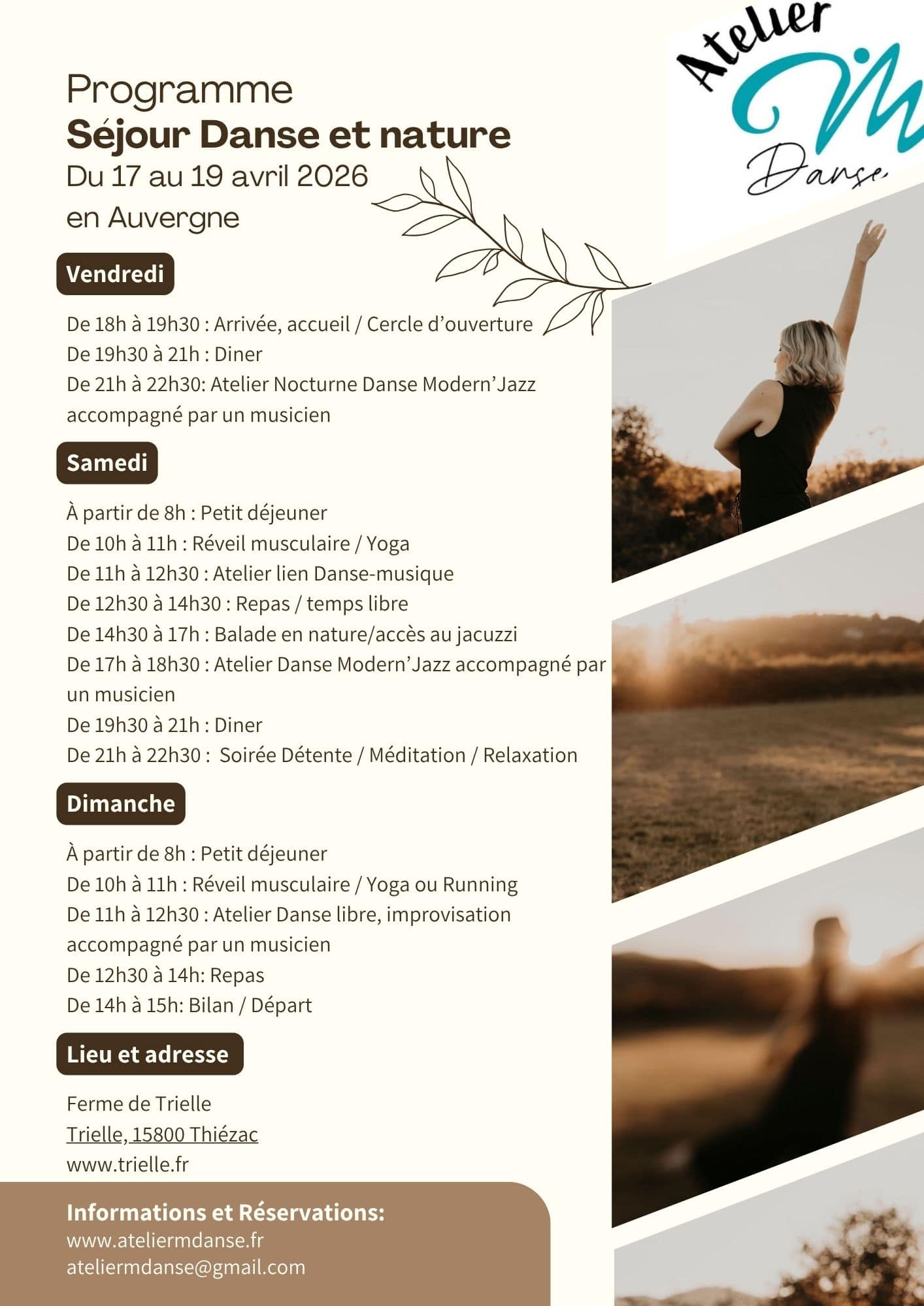 Séjour Danse et nature – Du Vendredi 17 avril au dimanche 19 avril 2026 à la Ferme de Trielle (Cantal).