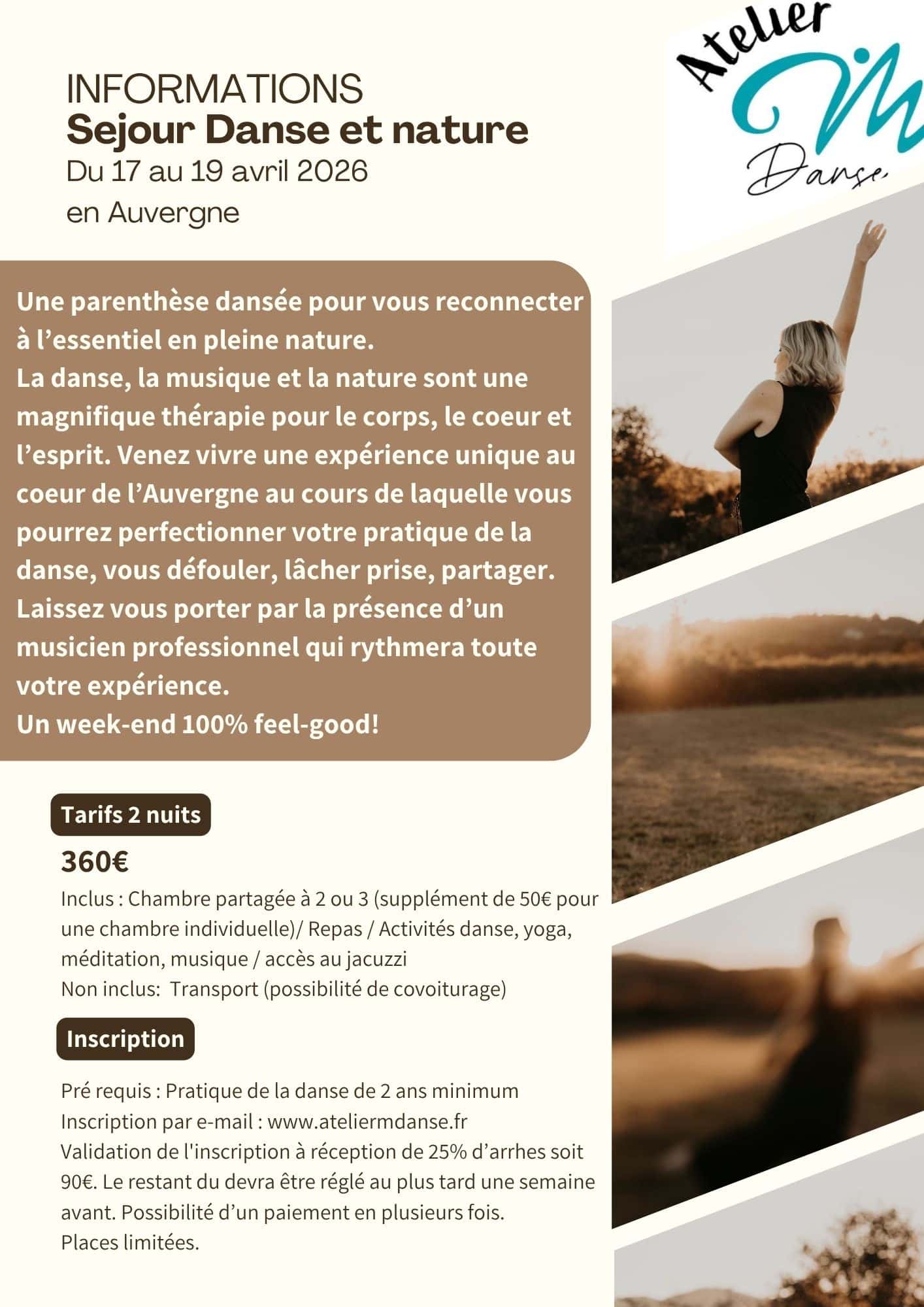 Inscription par email : ateliermdanse.fr / Validation après le versement de 90€ d’arrhes